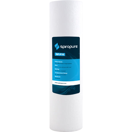 The SpiroPure SP-P10 spun polypropylene water filter cartridge reduces sediment for various water filtration needs, including residential, commercial, and municipal drinking water. SP-P10 is a high-quality replacement non-woven melt-blown polypropylene sediment filter that fits any standard filter housings that use 10" x 2.5" filter cartridges—a recommended compatible replacement for other filter cartridges such as SDC-25-1010.